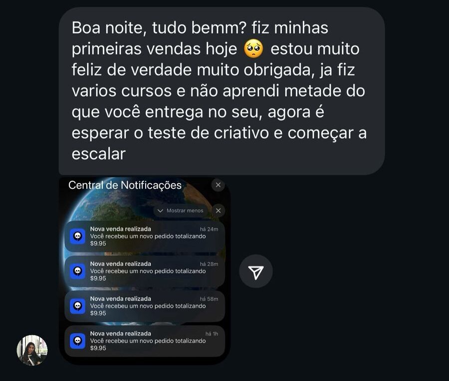 Você vai aprender todo processo necessário de copy, criativos e tráfego para começar a vender os produtos prontos sem aparecer.